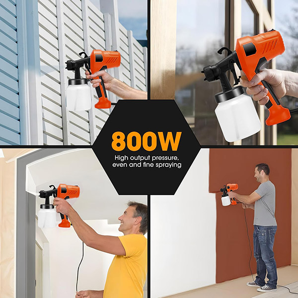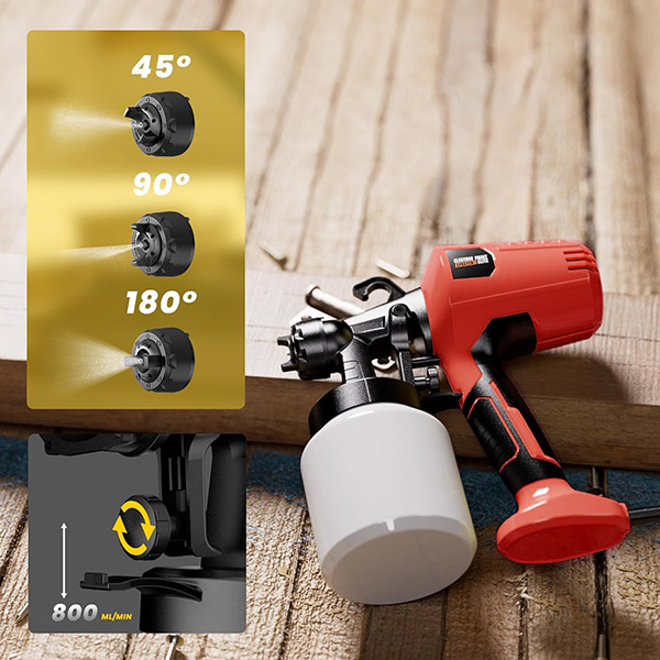 Täitke 800 ml paak, keerake see peale ja alustage värvimist – seadistamine võtab aega alla 60 sekundi. Ei mingit kruntimist, värvi vedeldamist ega lisavarustuse ostmist. 2,5 mm otsik tagab ühtlase ja reguleeritava voolu, nii et säilitate kontrolli esimesest tõmbest viimaseni.