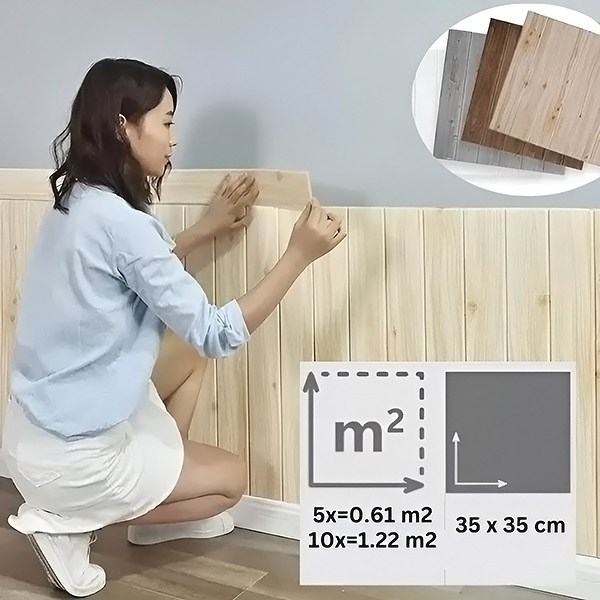 Iga pakend sisaldab 5 tükki (35×35 cm), mis katavad 0,61 m². Enne alustamist arvutage välja, kui palju pakke te vajate, lähtudes teie seinapinnast. Ostke suuremate pindade jaoks rohkem pakke ja nautige mahusoodustusi!