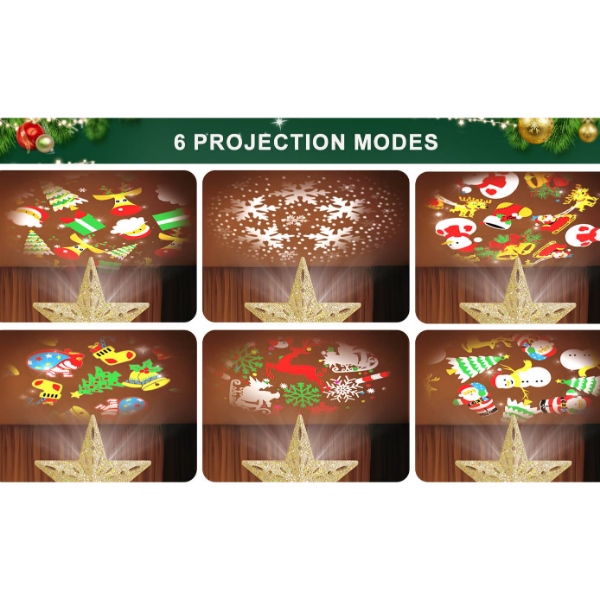 Vaheta lumehelveste, jõuluvana, sokkide ja muu vahel, kasutades vahetatavaid projektsioonikilesid.