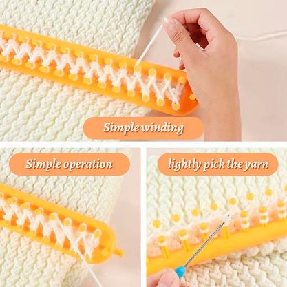 Seda tööriista on uskumatult lihtne kasutada – kõik, mida tegema peate, on lõnga üle ajama ja selle ümber nuppude keerama. Kui olete lõpetanud, eemaldage lihtsalt lõng tööriistalt!