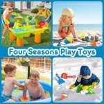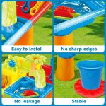 SANDLANDIA komplekt on valmistatud vastupidavast plastikust, mis peab vastu välitingimustes, tagades pikaajalise lõbususe ja turvalise mängu aias või rannas.