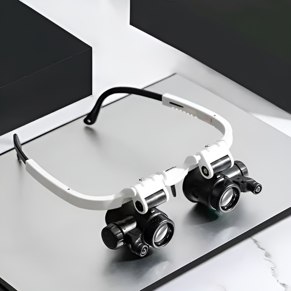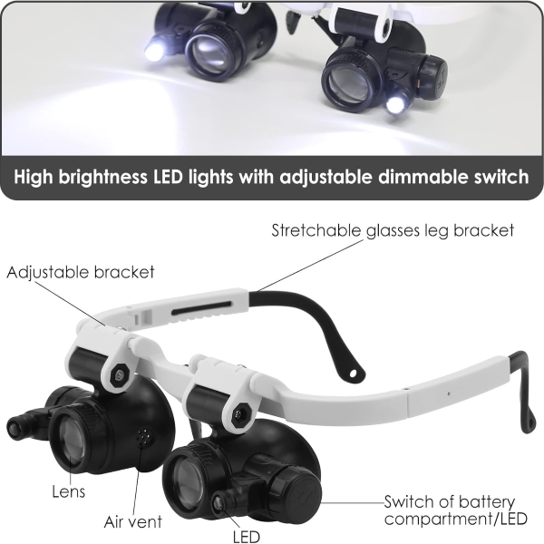 Kahe reguleeritava LED-tulega varustatud suurendusklaas tagab optimaalse valgustuse hämarates keskkondades selgema vaate.