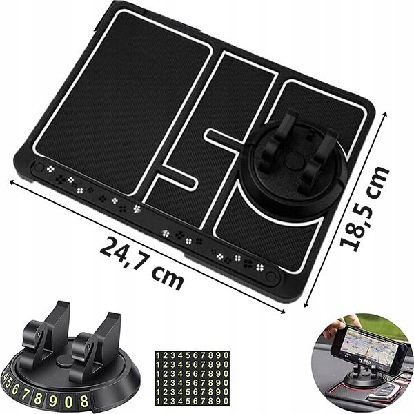 📏 Universaalne sobivus: Mõõtmetega 24,7 x 18,5 cm, see matt sobib sujuvalt igale auto armatuurlauale, tagades kindla ja turvalise paigutuse.