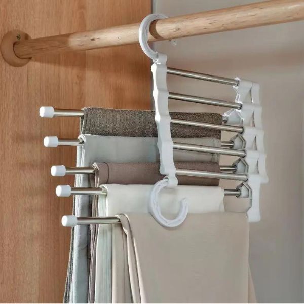 Ärge oodake enam! Parandage oma garderoobi organiseerimist ja säästke ruumi selle suurepärase 5-astmelise püksiriiuliga.