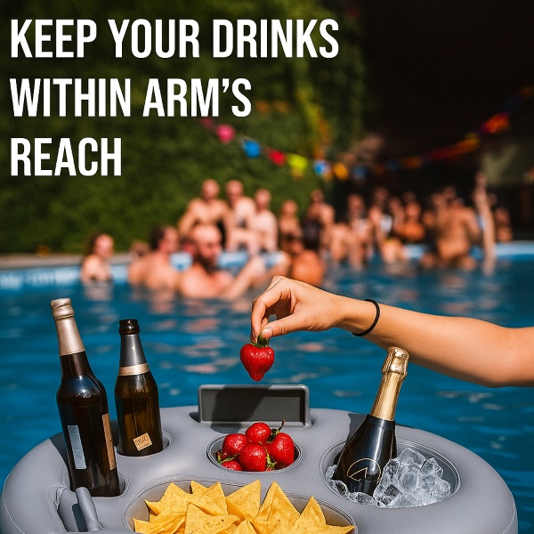 Disainitud 4 joogihoidja ja 4 lisasektsiooniga, pakub see ujuv alus rohkelt ruumi jookidele, suupistetele ja muule.