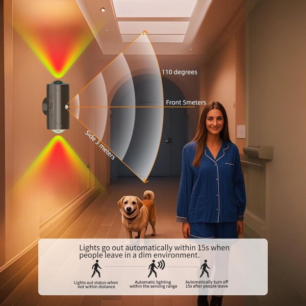 Tuvastab inimliikumise pimedates kohtades ja lülitub 15 sekundiks sisse, seejärel kustub energia säästmiseks.
